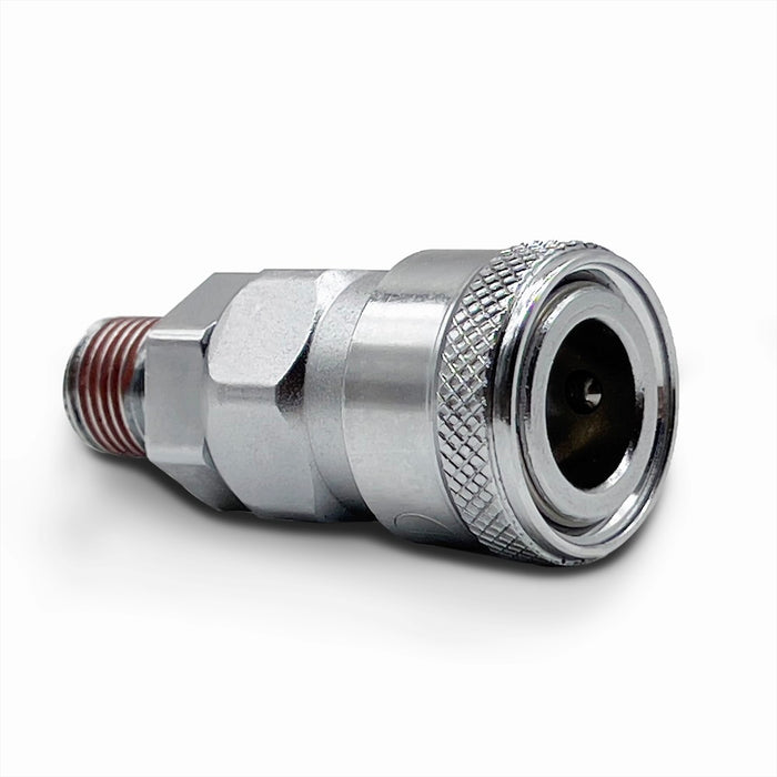 Nitto Style female standard coupler with male thread fitting. Industry Standard Code: 20SM