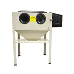 Freestanding sandblasting cabinet for general blasting of materials in the enclosed cabinet with no mess.