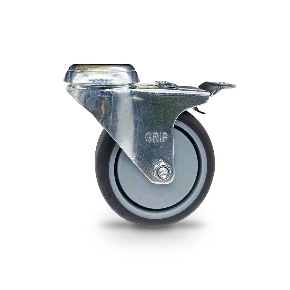Grip 42007 75mm 70kg Institutional Grey TPR Swivel Castor with Brake & Bolt Hole