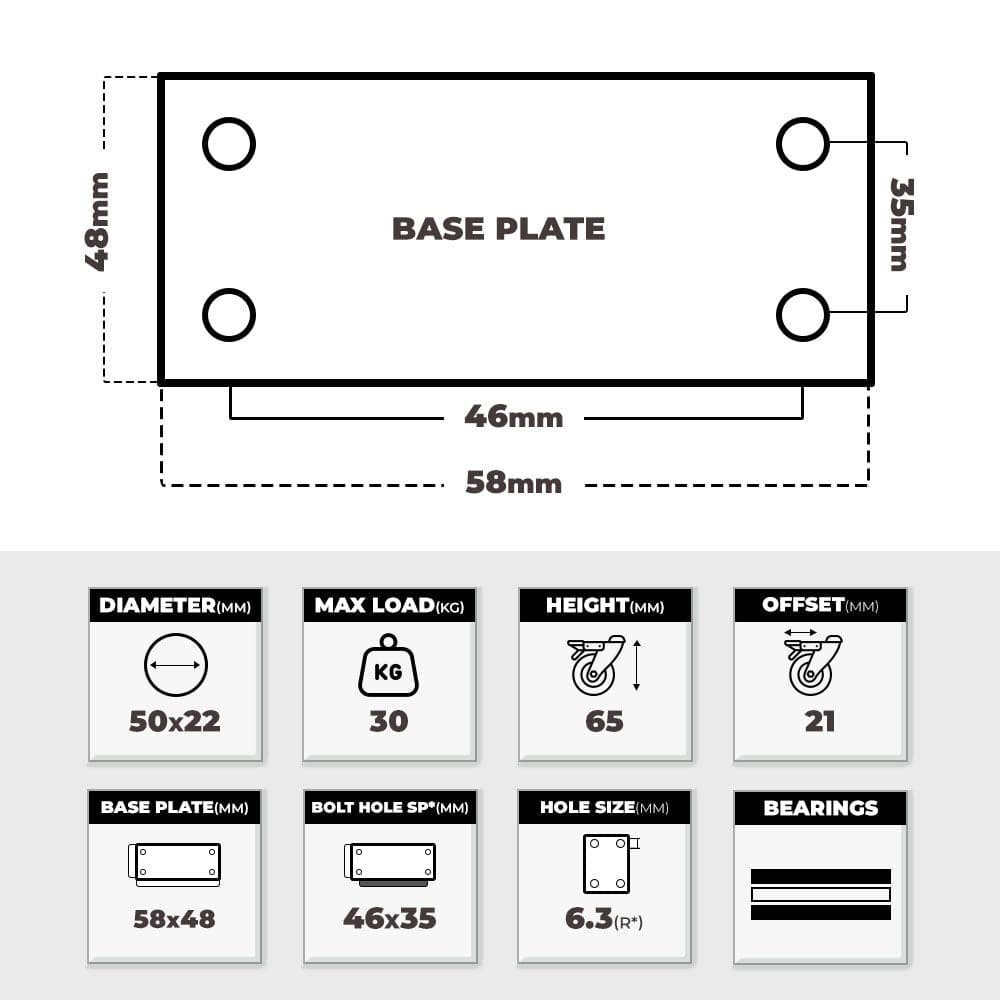Grip 43010 50mm 30kg Black Rubber Wheel Swivel Castor